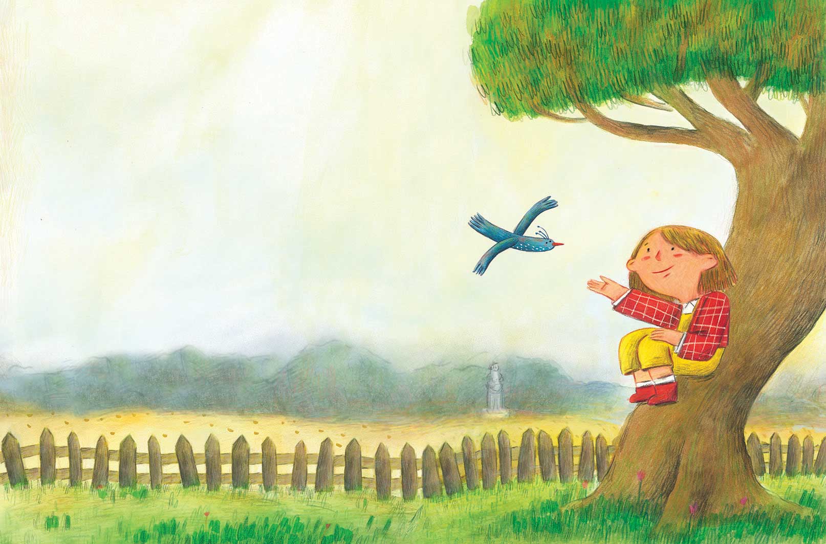 When Mira walks to school, she finds a small bird on the street. It is still too young to fly, so Mira takes the bird home. She feeds the bird pancakes with cherry jam, and in the evening they whistle songs to each other at bedtime. Together, the days fly by. But as the bird grows and sees other birds outside, it becomes increasingly unhappy. Mira decides to set it free.