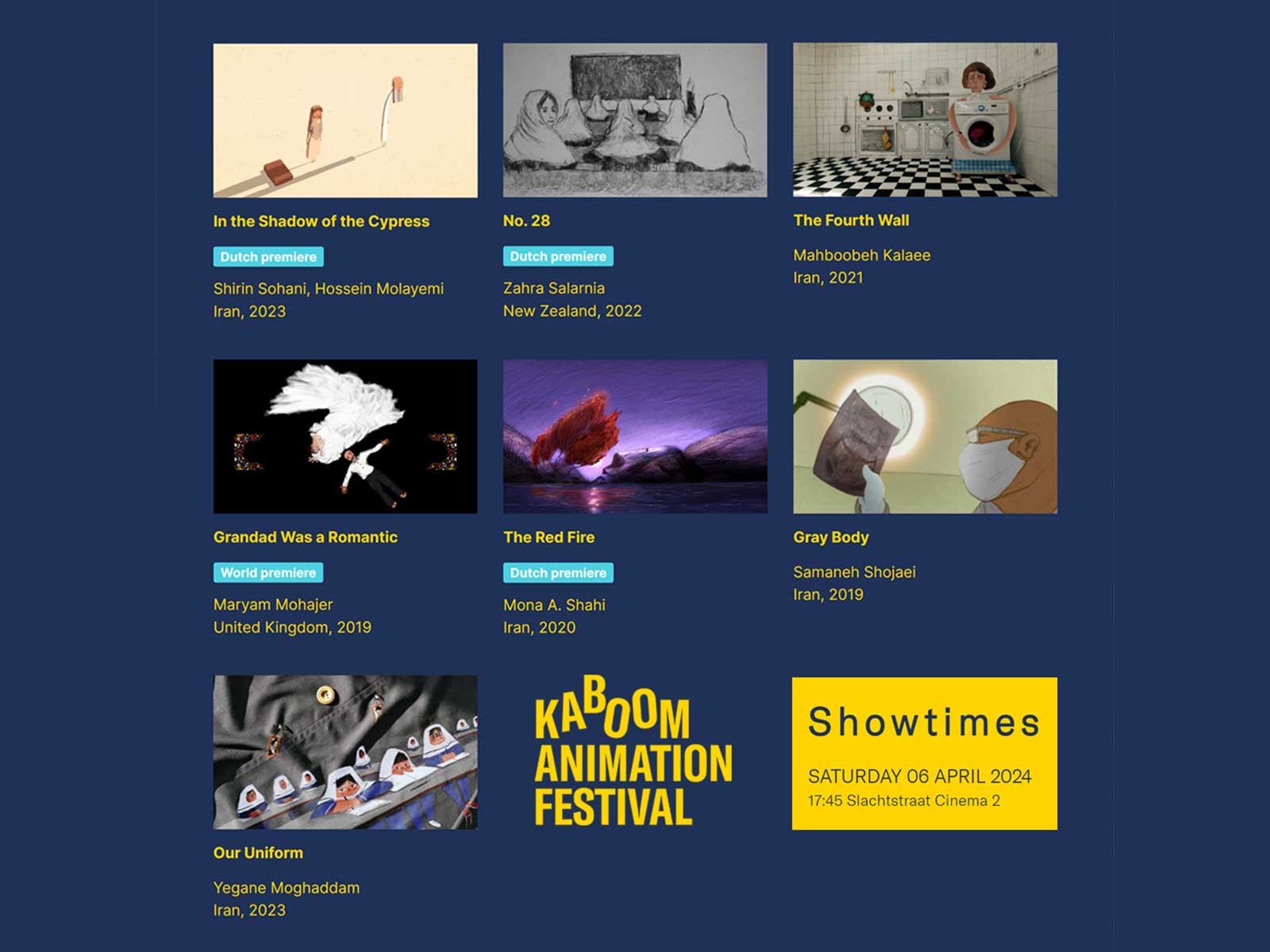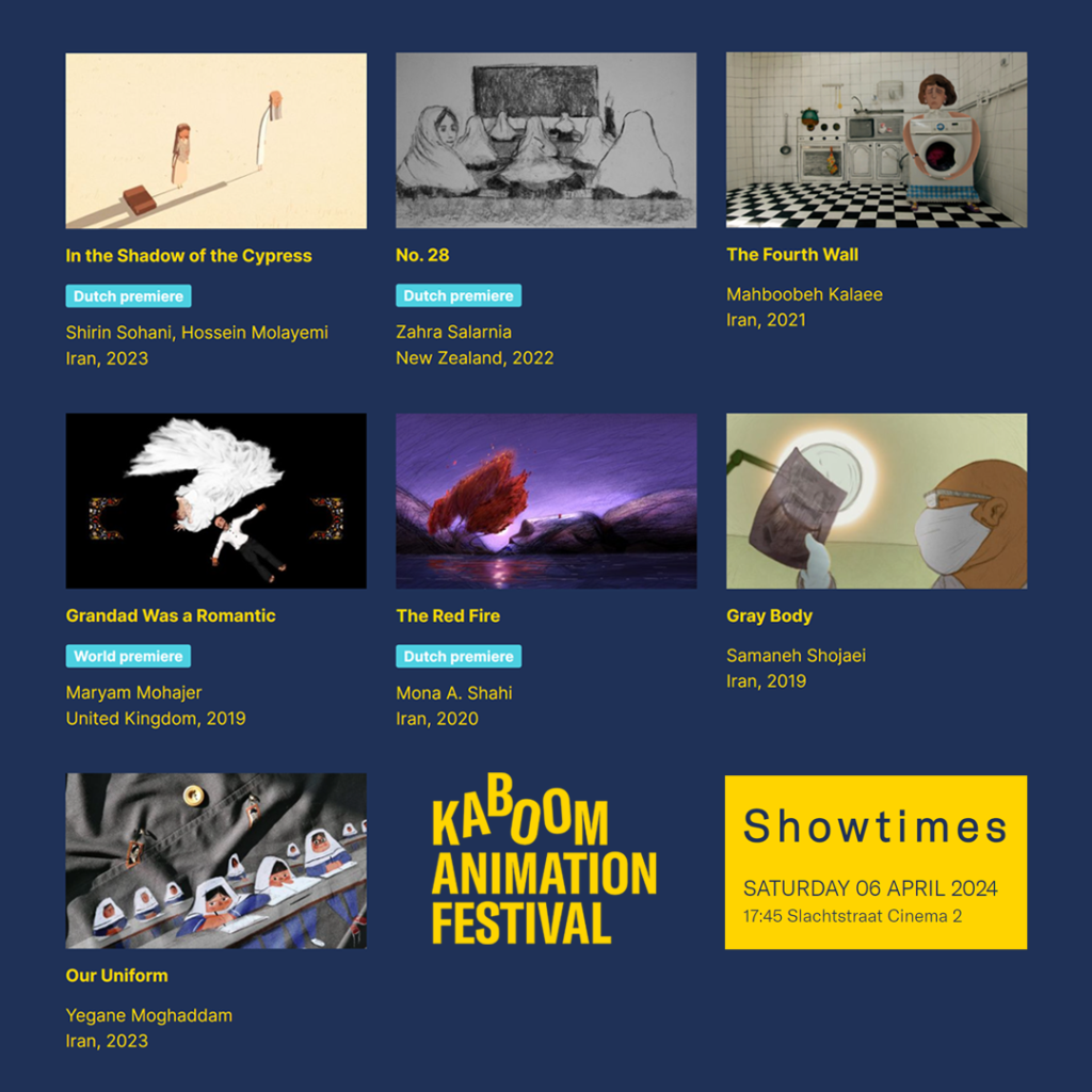 In April 2024, Narjes Mohammadi curated a program at the Kaboom Animation Festival showcasing Iranian female animation and the work of women directors.