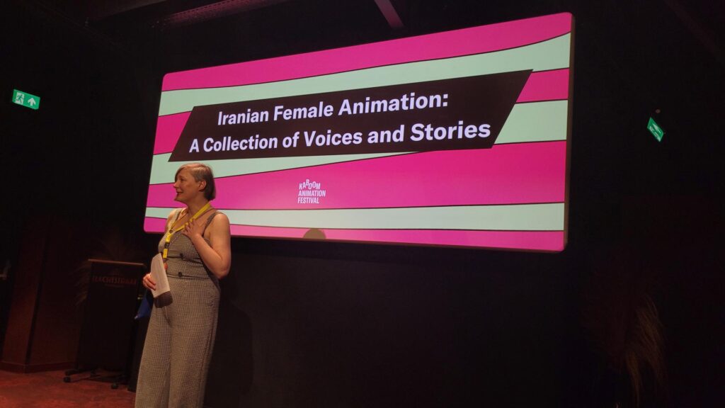 In April 2024, I curated a special program for the Kaboom Animation Festival featuring animated films by Iranian female directors. The selection showcased a range of visual styles, narratives, and perspectives, highlighting the creativity and innovation of women in contemporary Iranian animation. The program offered audiences a unique insight into the diverse voices shaping the field today.