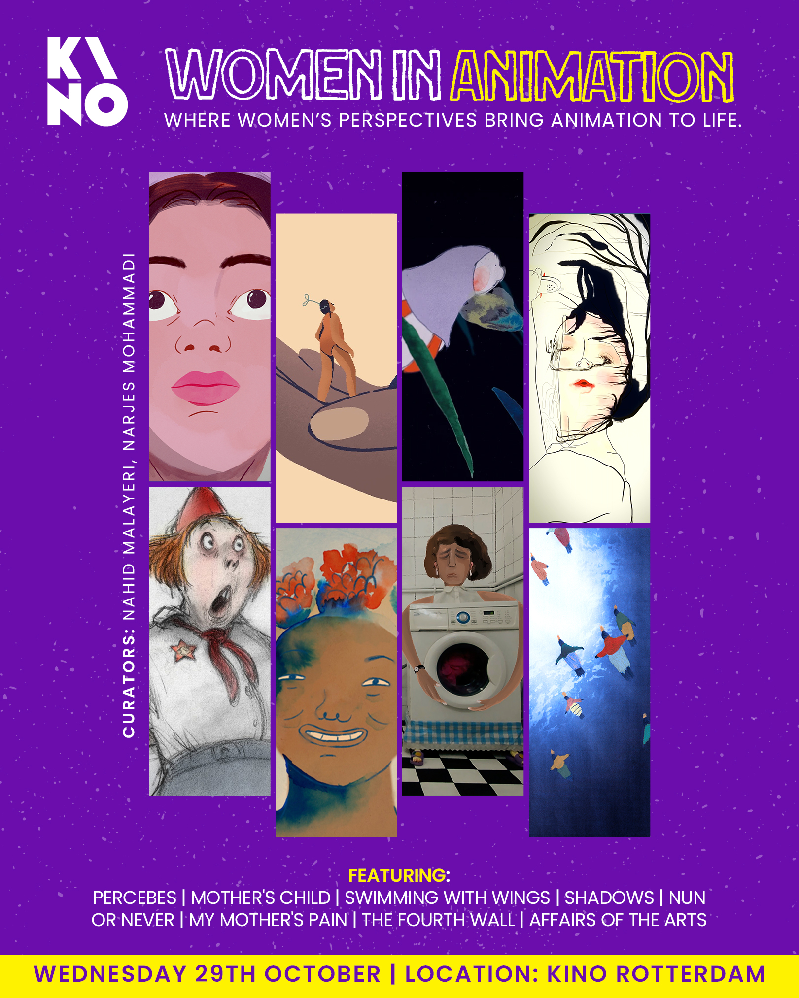In 2025, I curated a special animation program featuring works by female directors for Kino Cinema in Rotterdam. Kino is one of the city’s oldest and most important cultural venues, and it was a great honour to collaborate with them on this program.