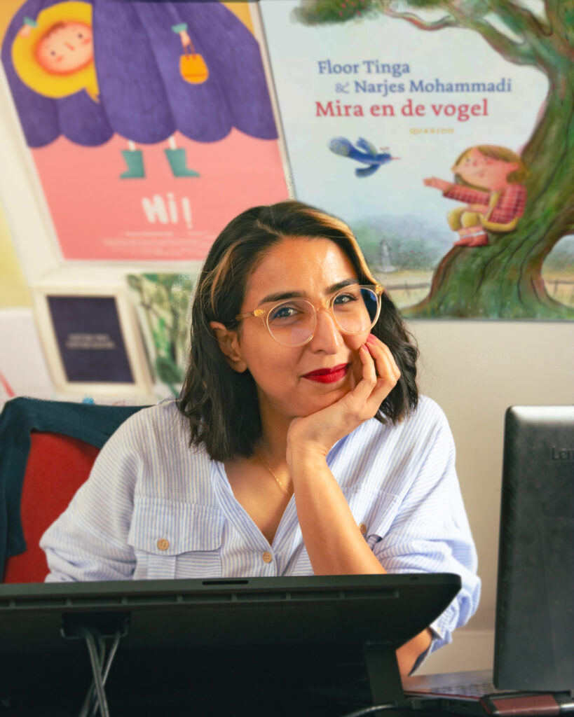 Her journey in the arts began in Iran, where she illustrated several children’s books. Her critically acclaimed picture books have been translated into multiple languages and sold thousands of copies worldwide. What a Brilliant Idea! received international recognition, winning awards at festivals including White Raven, COW, and the Hiiibrand Illustration Prize, and was selected as one of the best books by the Victoria Government in Australia in 2021. More recently, her new book Mira en de Vogel was published by one of the Netherlands’ most prestigious publishers, Querido.